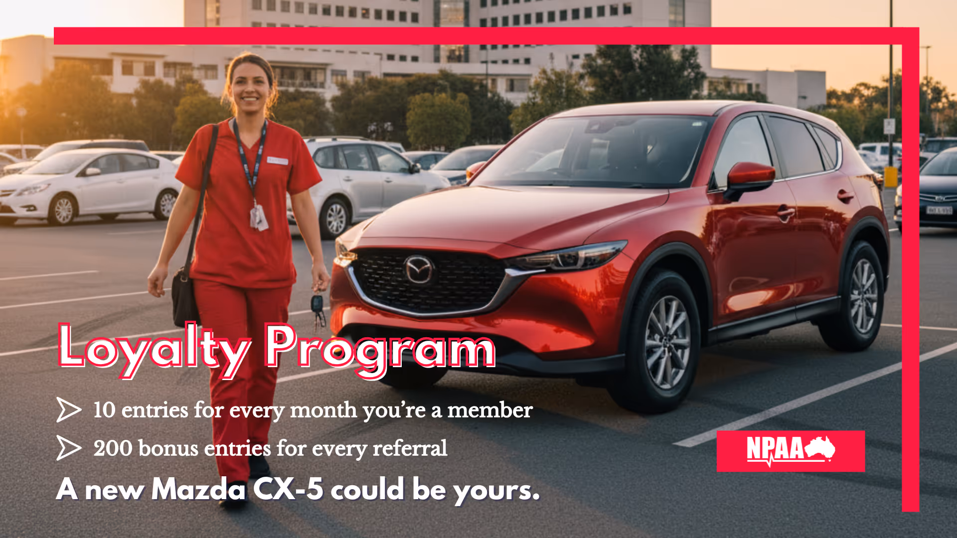 Join NPAA and accumulate 10 points for every month as a member in our loyalty program draw. The recent draw was to win a brand-new Red Mazda CX-5, valued at $45,000.
